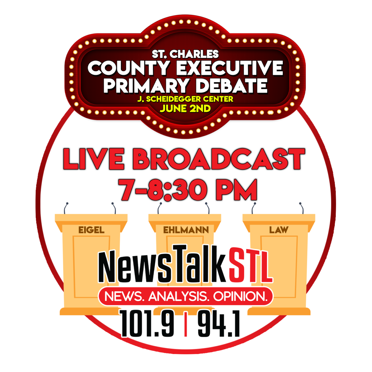 On Tuesday, June 2nd, NewsTalkSTL will be hosting a live debate at Lindenwood University at the J. Scheidegger Center for the Arts.