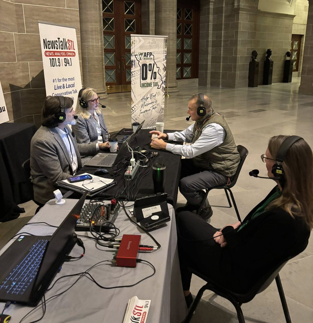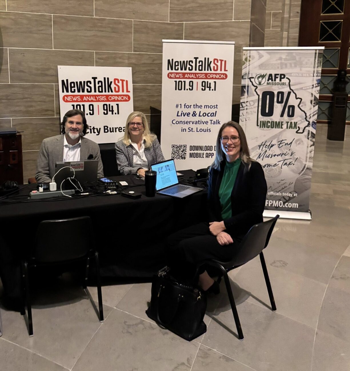 Mike was live from 5:30 AM to 9 AM, while Tim and Chris were live from 3 PM to 6pm. They were set up inside the Capitol’s 3rd-floor rotunda, talking to all the big names in Missouri politics.