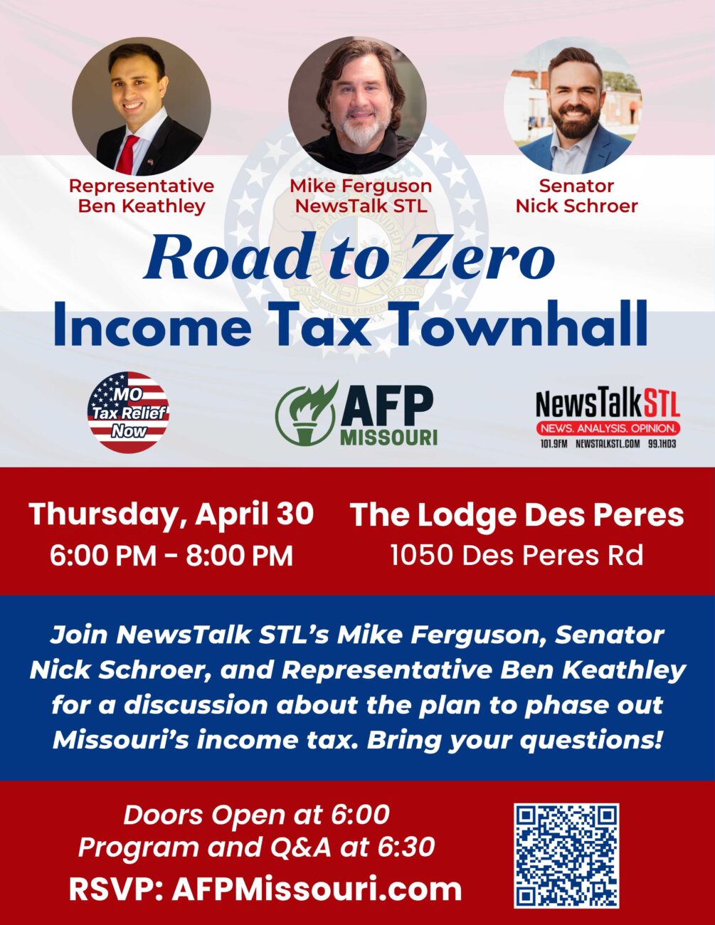 What if Missouri eliminated its income tax entirely? Find out how at the Road to Zero Income Tax Townhall — hosted by NewsTalkSTL’s own Mike Ferguson, joined by Senator Nick Schroer and Representative Ben Keathley.